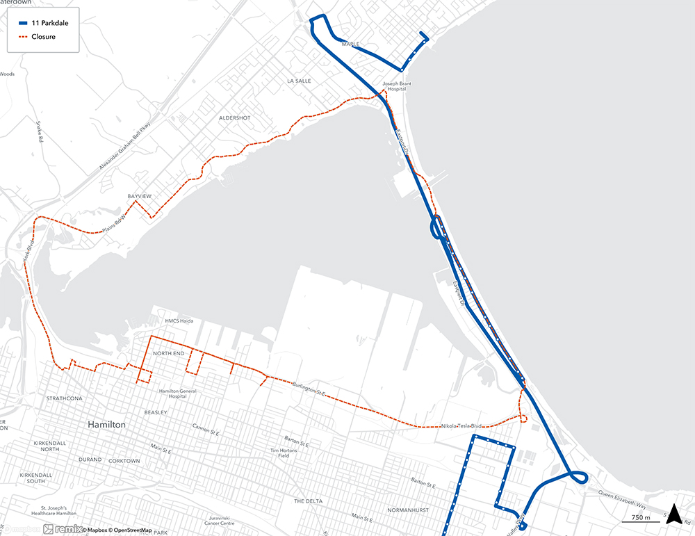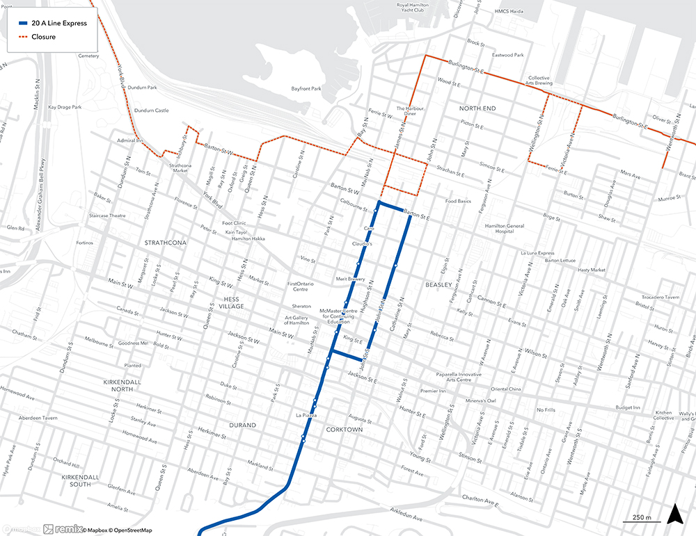 - Dundurn Street at York Boulevard - will be closed to all traffic from 7:30 am until approximately 2 pm