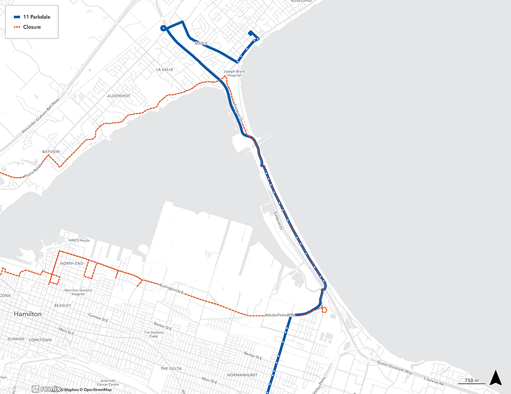 On Sunday, April 12, 2026 many HSR routes will be on Detour due to the Around the Bay Road Race.